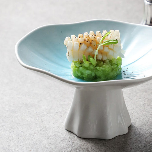 Blue Ceramic High-Foot Mushroom Plate